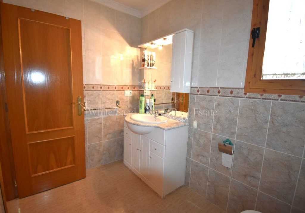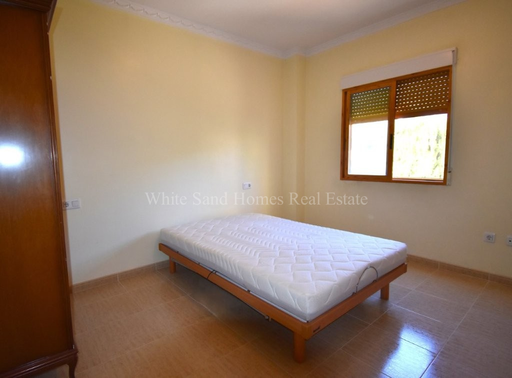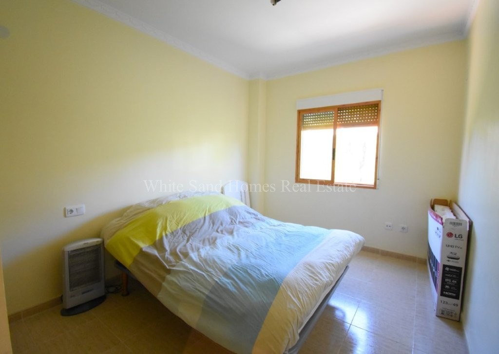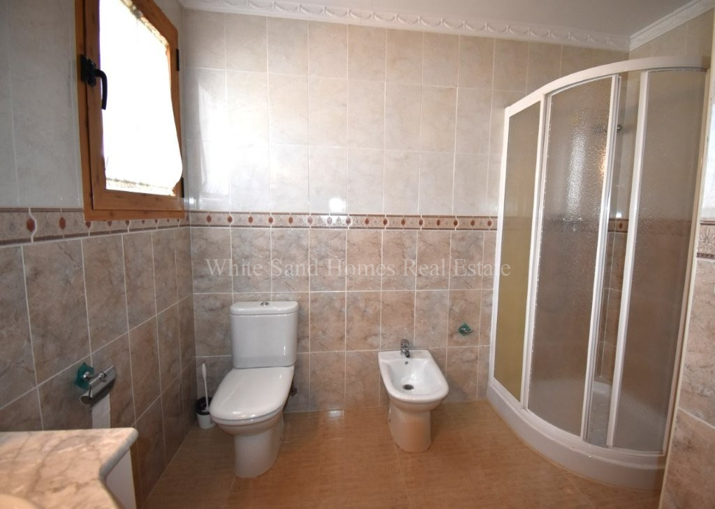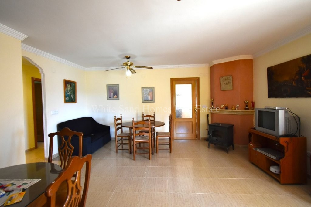 The upper level is bright, welcoming, and ready to enjoy. It comprises three spacious double bedrooms, a family bathroom, a fully fitted kitchen, and a comfortable lounge-dining area filled with natural light. From here, you access the standout feature of the home, a wraparound covered terrace where you can relax and take in the stunning mountain views from morning through to sunset.
