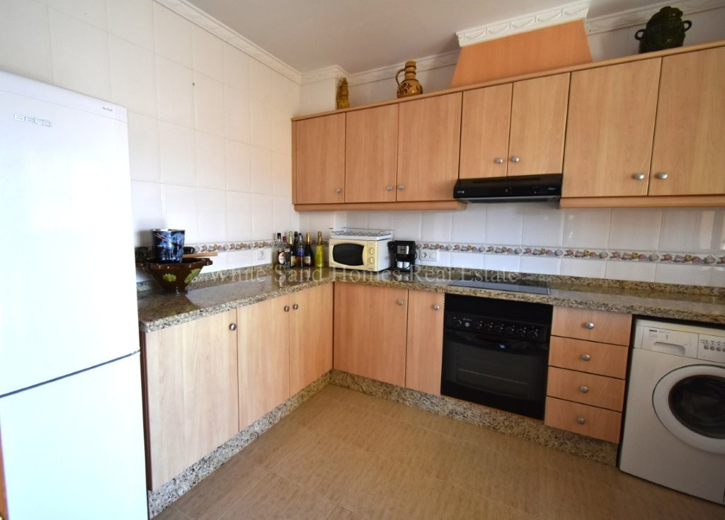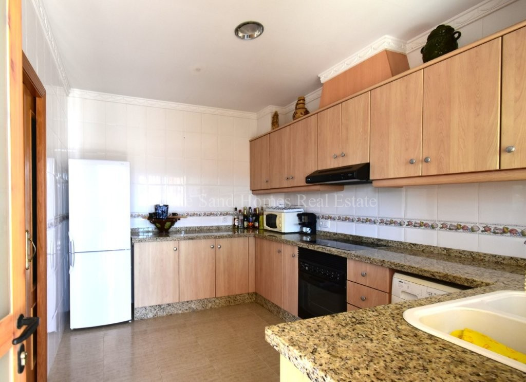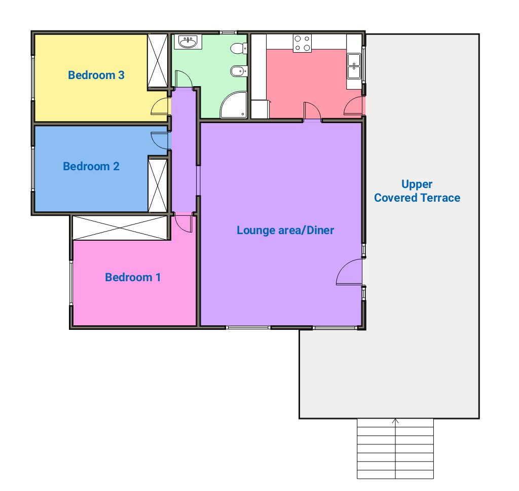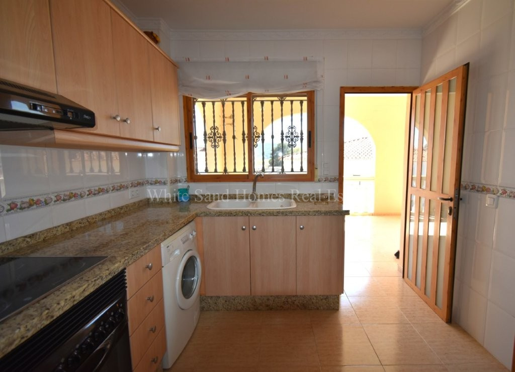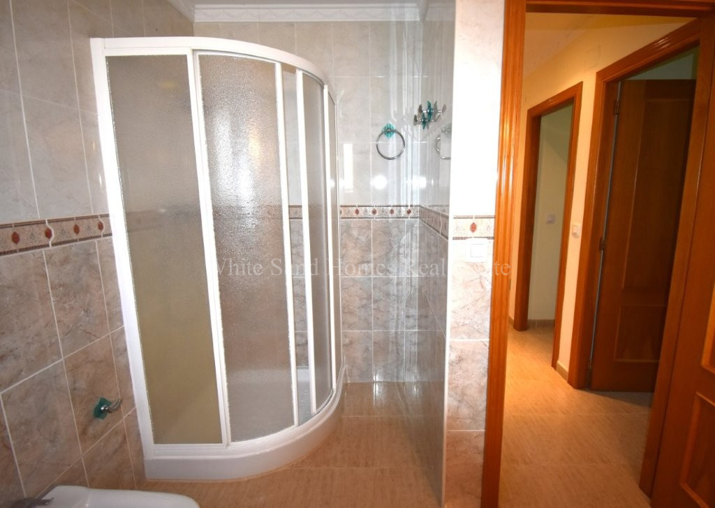 The upper level is bright, welcoming, and ready to enjoy. It comprises three spacious double bedrooms, a family bathroom, a fully fitted kitchen, and a comfortable lounge-dining area filled with natural light. From here, you access the standout feature of the home, a wraparound covered terrace where you can relax and take in the stunning mountain views from morning through to sunset.